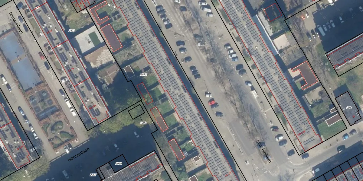 Het perceel waarop Marshalllaan 209 staat heeft een oppervlakte van 5127 m². Dit is een zeer groot perceel. De perceeloppervlakte wordt geregistreerd door het Kadaster. Gedetailleerde informatie over de maten van dit perceel kunt u vinden in het rapport Kadastrale kaart met maatvoering van Marshalllaan 209.