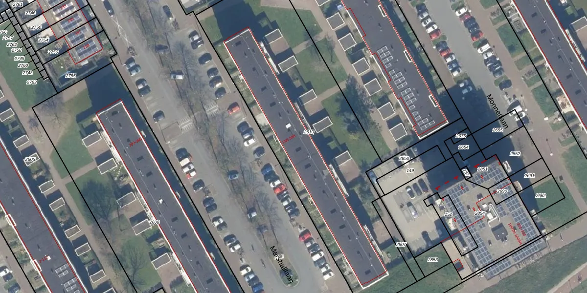 Het perceel waarop Marshalllaan 346 staat heeft een oppervlakte van 3199 m². Dit is een zeer groot perceel. De perceeloppervlakte wordt geregistreerd door het Kadaster. Gedetailleerde informatie over de maten van dit perceel kunt u vinden in het rapport Kadastrale kaart met maatvoering van Marshalllaan 346.