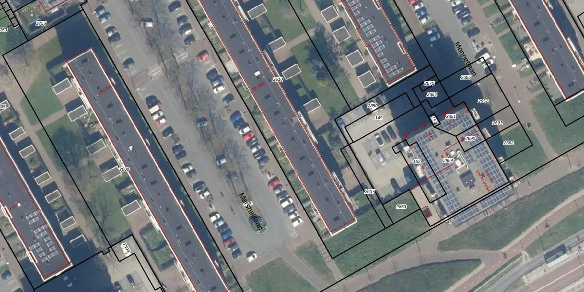 Het perceel waarop Marshalllaan 352 staat heeft een oppervlakte van 3199 m². Dit is een zeer groot perceel. De perceeloppervlakte wordt geregistreerd door het Kadaster. Gedetailleerde informatie over de maten van dit perceel kunt u vinden in het rapport Kadastrale kaart met maatvoering van Marshalllaan 352.