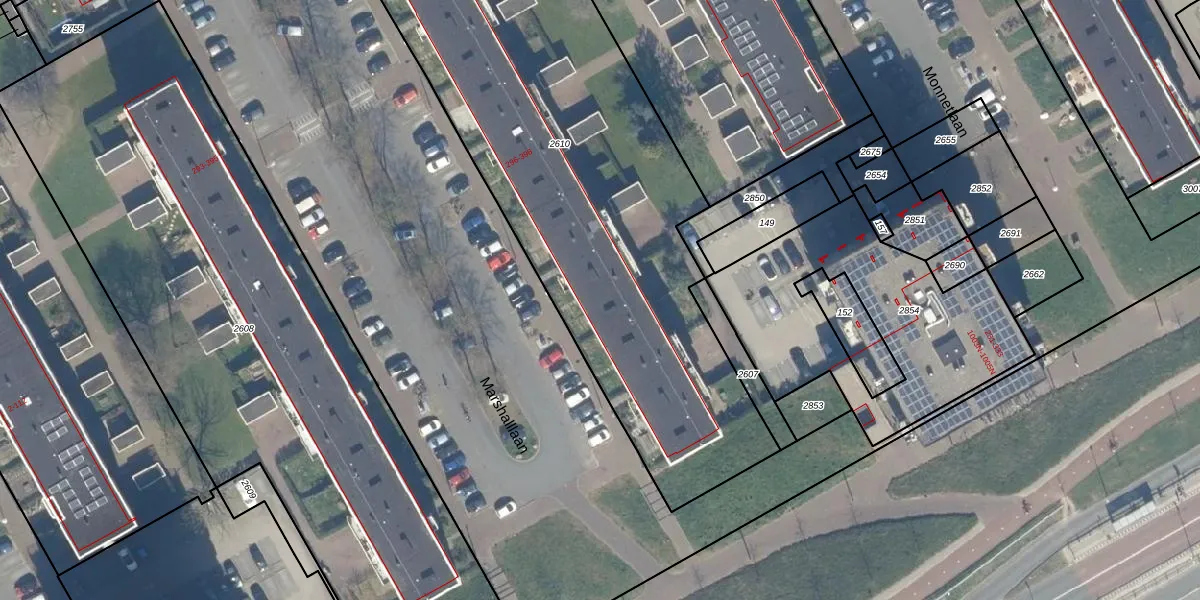 Het perceel waarop Marshalllaan 372 staat heeft een oppervlakte van 3199 m². Dit is een zeer groot perceel. De perceeloppervlakte wordt geregistreerd door het Kadaster. Gedetailleerde informatie over de maten van dit perceel kunt u vinden in het rapport Kadastrale kaart met maatvoering van Marshalllaan 372.