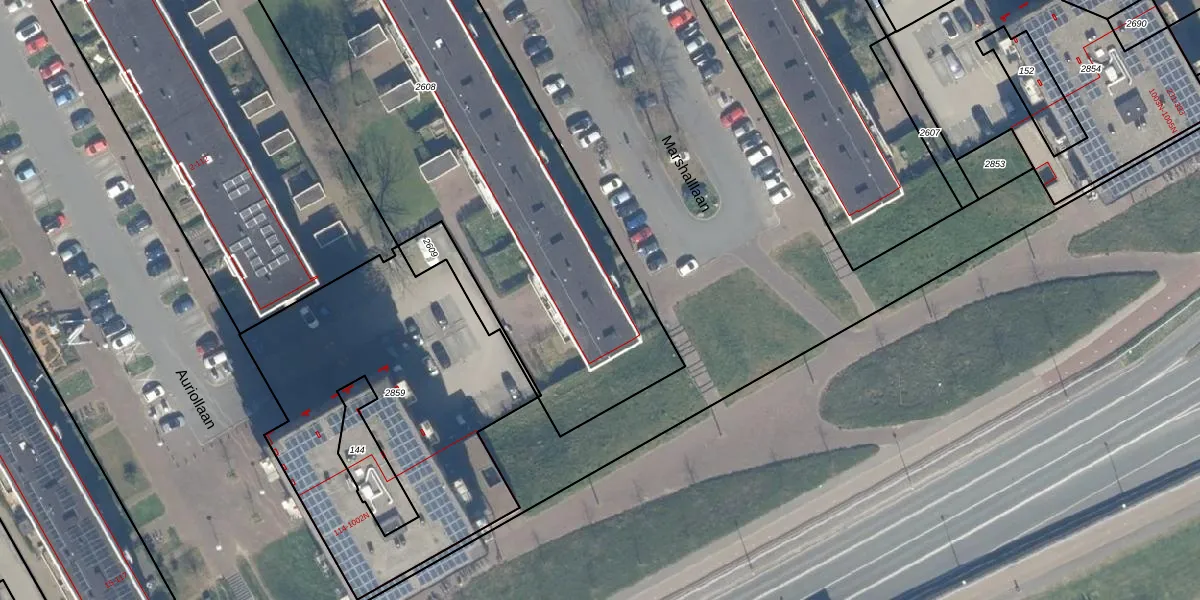 Het perceel waarop Marshalllaan 375 staat heeft een oppervlakte van 3360 m². Dit is een zeer groot perceel. De perceeloppervlakte wordt geregistreerd door het Kadaster. Gedetailleerde informatie over de maten van dit perceel kunt u vinden in het rapport Kadastrale kaart met maatvoering van Marshalllaan 375.