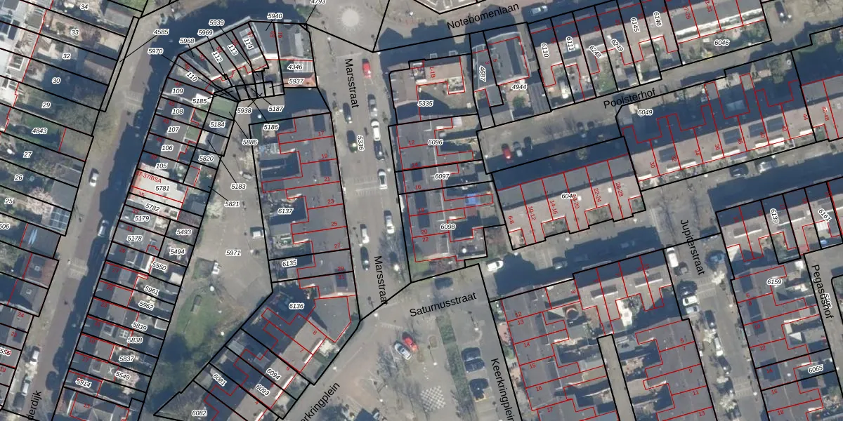 Het perceel waarop Marsstraat 18 staat heeft een oppervlakte van 419 m². Dit is een groot perceel. De perceeloppervlakte wordt geregistreerd door het Kadaster. Gedetailleerde informatie over de maten van dit perceel kunt u vinden in het rapport Kadastrale kaart met maatvoering van Marsstraat 18.