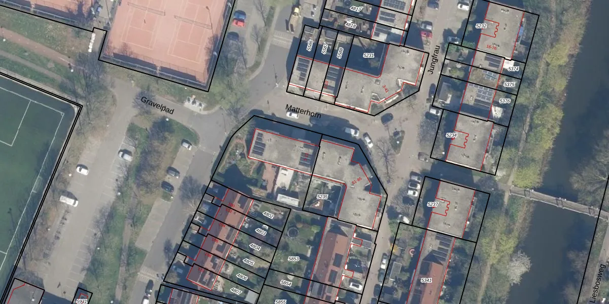 Het perceel waarop Matterhorn 7 staat heeft een oppervlakte van 1409 m². Dit is een zeer groot perceel. De perceeloppervlakte wordt geregistreerd door het Kadaster. Gedetailleerde informatie over de maten van dit perceel kunt u vinden in het rapport Kadastrale kaart met maatvoering van Matterhorn 7.