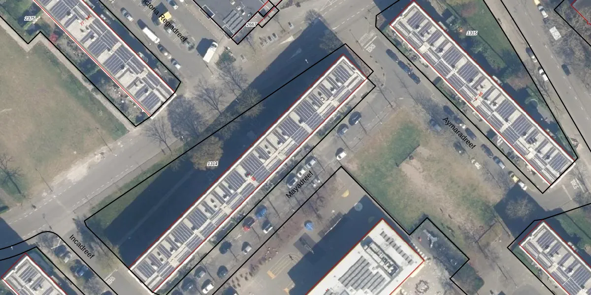 Het perceel waarop Mayadreef 64 staat heeft een oppervlakte van 2885 m². Dit is een zeer groot perceel. De perceeloppervlakte wordt geregistreerd door het Kadaster. Gedetailleerde informatie over de maten van dit perceel kunt u vinden in het rapport Kadastrale kaart met maatvoering van Mayadreef 64.