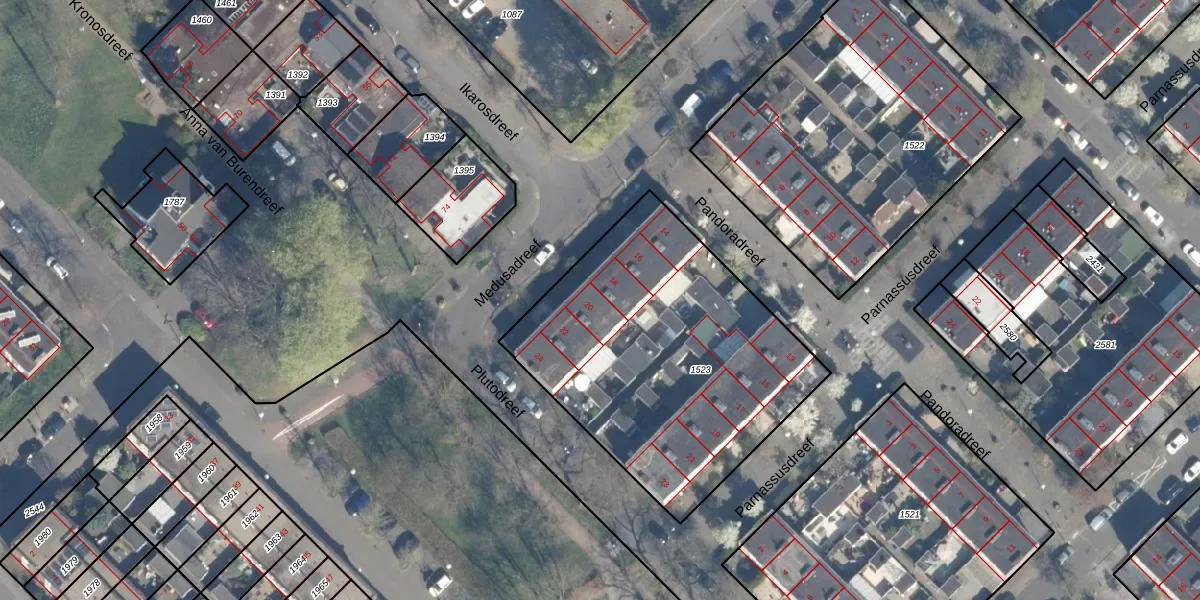 Het perceel waarop Medusadreef 20 staat heeft een oppervlakte van 1537 m². Dit is een zeer groot perceel. De perceeloppervlakte wordt geregistreerd door het Kadaster. Gedetailleerde informatie over de maten van dit perceel kunt u vinden in het rapport Kadastrale kaart met maatvoering van Medusadreef 20.