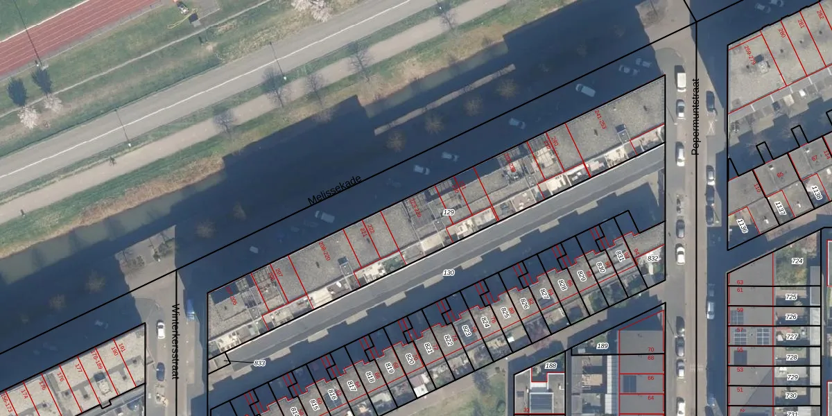 Het perceel waarop Melissekade 227 staat heeft een oppervlakte van 1779 m². Dit is een zeer groot perceel. De perceeloppervlakte wordt geregistreerd door het Kadaster. Gedetailleerde informatie over de maten van dit perceel kunt u vinden in het rapport Kadastrale kaart met maatvoering van Melissekade 227.