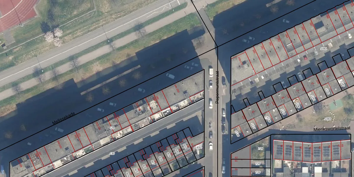 Het perceel waarop Melissekade 243 staat heeft een oppervlakte van 1779 m². Dit is een zeer groot perceel. De perceeloppervlakte wordt geregistreerd door het Kadaster. Gedetailleerde informatie over de maten van dit perceel kunt u vinden in het rapport Kadastrale kaart met maatvoering van Melissekade 243.