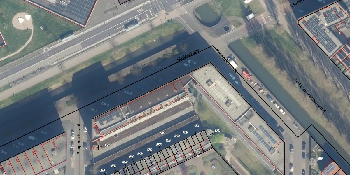 Het perceel waarop Melissekade 359 staat heeft een oppervlakte van 4480 m². Dit is een zeer groot perceel. De perceeloppervlakte wordt geregistreerd door het Kadaster. Gedetailleerde informatie over de maten van dit perceel kunt u vinden in het rapport Kadastrale kaart met maatvoering van Melissekade 359.
