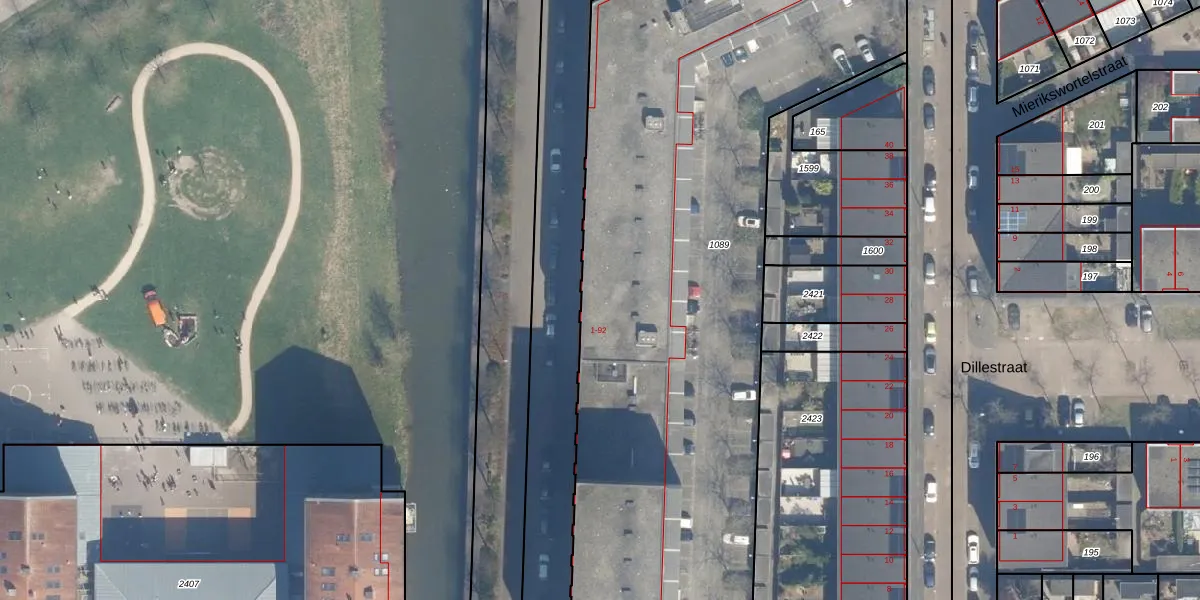Het perceel waarop Melissekade 44 staat heeft een oppervlakte van 4656 m². Dit is een zeer groot perceel. De perceeloppervlakte wordt geregistreerd door het Kadaster. Gedetailleerde informatie over de maten van dit perceel kunt u vinden in het rapport Kadastrale kaart met maatvoering van Melissekade 44.