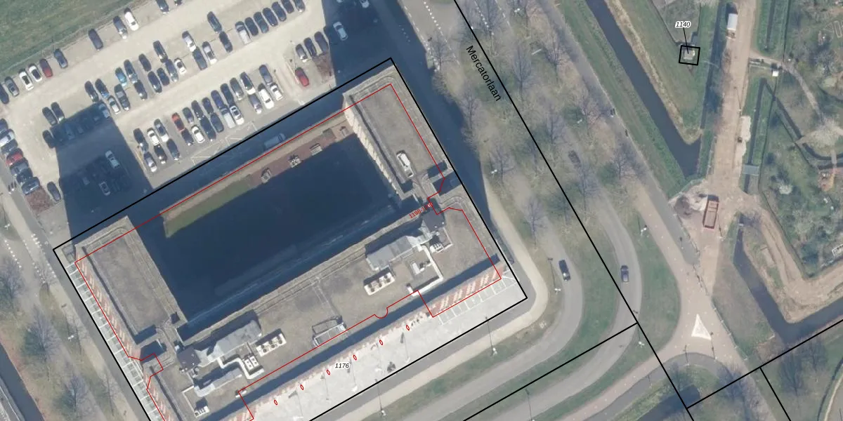Het perceel waarop Mercatorlaan 1198 staat heeft een oppervlakte van 6037 m². Dit is een zeer groot perceel. De perceeloppervlakte wordt geregistreerd door het Kadaster. Gedetailleerde informatie over de maten van dit perceel kunt u vinden in het rapport Kadastrale kaart met maatvoering van Mercatorlaan 1198.