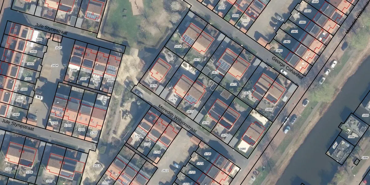 Meredith Willsonstraat 51 is gelegen op kadastraal perceel CTR00A1676. Deze kadastrale aanduiding is uniek en wordt gebruikt door het Kadaster om eigendomsrechten en andere zakelijke rechten vast te leggen. Het perceel maakt onderdeel uit van de kadastrale gemeente Catharijne.