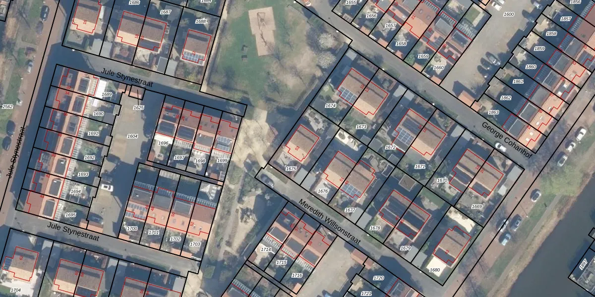 Het perceel waarop Meredith Willsonstraat 53 staat heeft een oppervlakte van 313 m². Dit is een groot perceel. De perceeloppervlakte wordt geregistreerd door het Kadaster. Gedetailleerde informatie over de maten van dit perceel kunt u vinden in het rapport Kadastrale kaart met maatvoering van Meredith Willsonstraat 53.