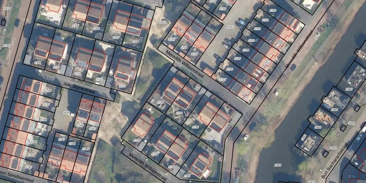 Het perceel waarop Meredith Willsonstraat 85 staat heeft een oppervlakte van 280 m². Dit is een middelgroot perceel. De perceeloppervlakte wordt geregistreerd door het Kadaster. Gedetailleerde informatie over de maten van dit perceel kunt u vinden in het rapport Kadastrale kaart met maatvoering van Meredith Willsonstraat 85.