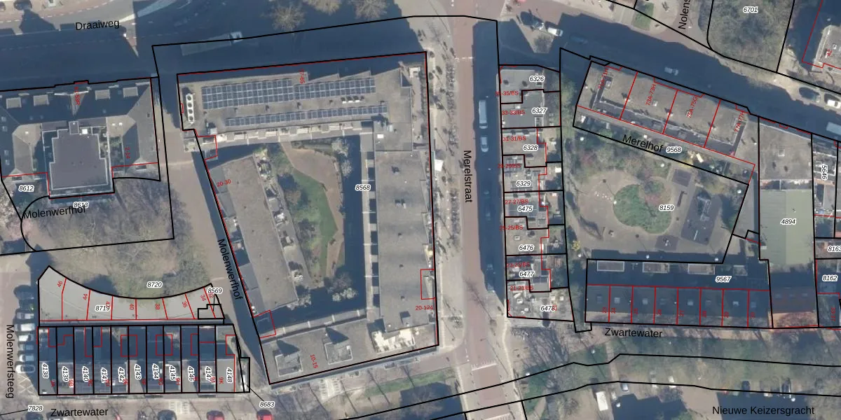 Merelstraat 46 is gelegen op kadastraal perceel LWR01C8568. Deze kadastrale aanduiding is uniek en wordt gebruikt door het Kadaster om eigendomsrechten en andere zakelijke rechten vast te leggen. Het perceel maakt onderdeel uit van de kadastrale gemeente Lauwerecht.