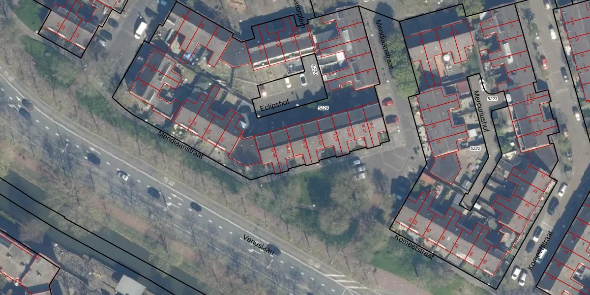 Het perceel waarop Meridiaanstraat 37 staat heeft een oppervlakte van 3520 m². Dit is een zeer groot perceel. De perceeloppervlakte wordt geregistreerd door het Kadaster. Gedetailleerde informatie over de maten van dit perceel kunt u vinden in het rapport Kadastrale kaart met maatvoering van Meridiaanstraat 37.