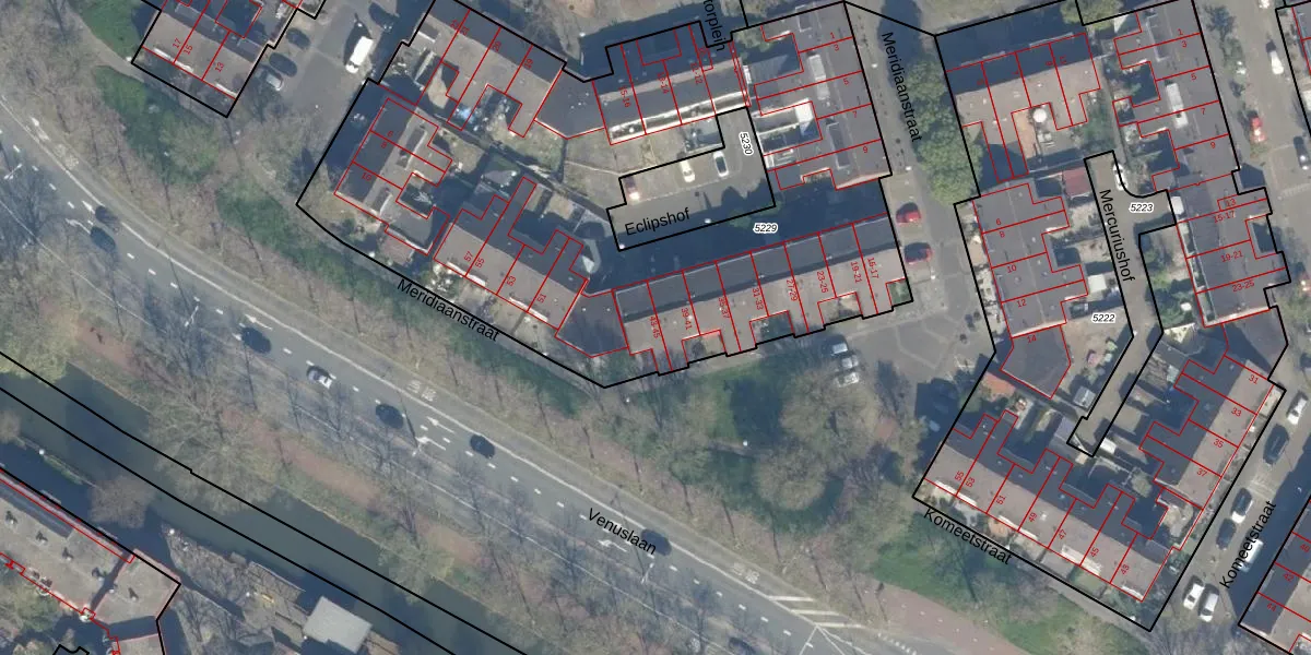Het perceel waarop Meridiaanstraat 43 staat heeft een oppervlakte van 3520 m². Dit is een zeer groot perceel. De perceeloppervlakte wordt geregistreerd door het Kadaster. Gedetailleerde informatie over de maten van dit perceel kunt u vinden in het rapport Kadastrale kaart met maatvoering van Meridiaanstraat 43.
