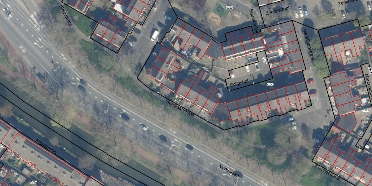 Het perceel waarop Meridiaanstraat 57 staat heeft een oppervlakte van 3520 m². Dit is een zeer groot perceel. De perceeloppervlakte wordt geregistreerd door het Kadaster. Gedetailleerde informatie over de maten van dit perceel kunt u vinden in het rapport Kadastrale kaart met maatvoering van Meridiaanstraat 57.