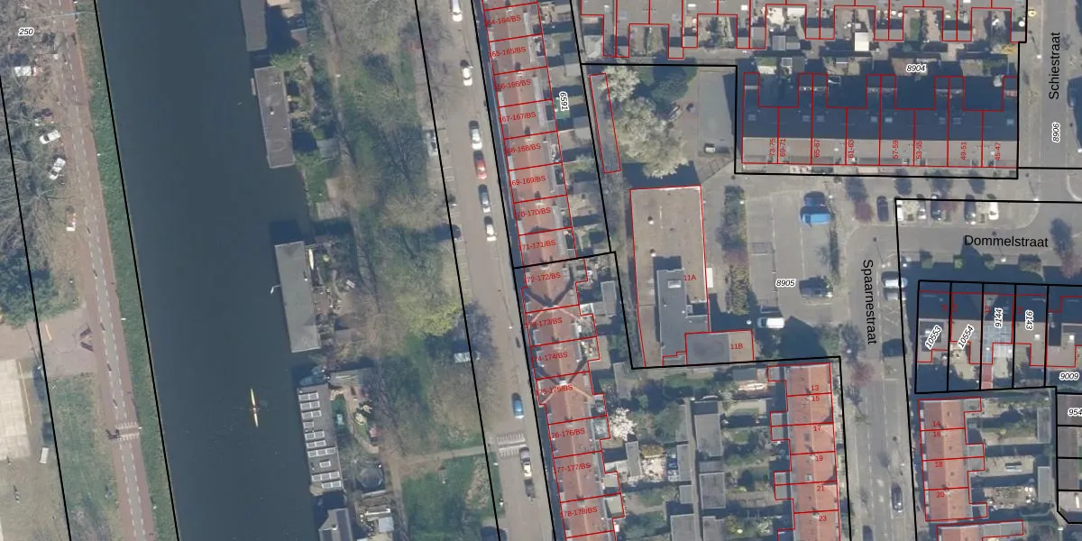 Het perceel waarop Merwedekade 172 staat heeft een oppervlakte van 5624 m². Dit is een zeer groot perceel. De perceeloppervlakte wordt geregistreerd door het Kadaster. Gedetailleerde informatie over de maten van dit perceel kunt u vinden in het rapport Kadastrale kaart met maatvoering van Merwedekade 172.