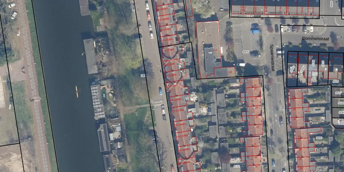 Het perceel waarop Merwedekade 175-BS staat heeft een oppervlakte van 5624 m². Dit is een zeer groot perceel. De perceeloppervlakte wordt geregistreerd door het Kadaster. Gedetailleerde informatie over de maten van dit perceel kunt u vinden in het rapport Kadastrale kaart met maatvoering van Merwedekade 175-BS.
