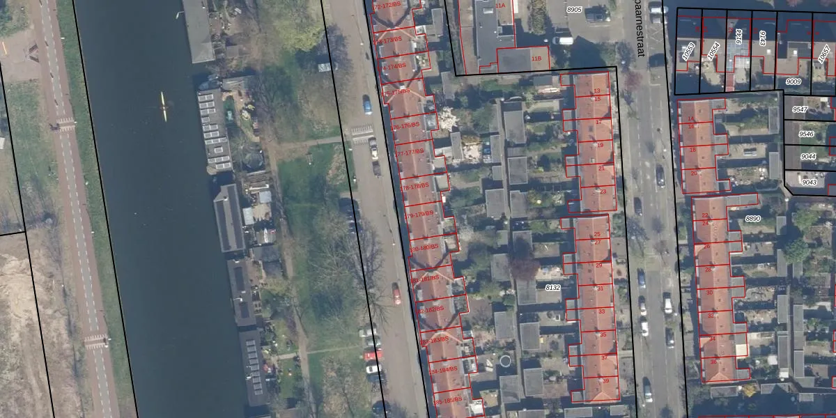 Het perceel waarop Merwedekade 179 staat heeft een oppervlakte van 5624 m². Dit is een zeer groot perceel. De perceeloppervlakte wordt geregistreerd door het Kadaster. Gedetailleerde informatie over de maten van dit perceel kunt u vinden in het rapport Kadastrale kaart met maatvoering van Merwedekade 179.
