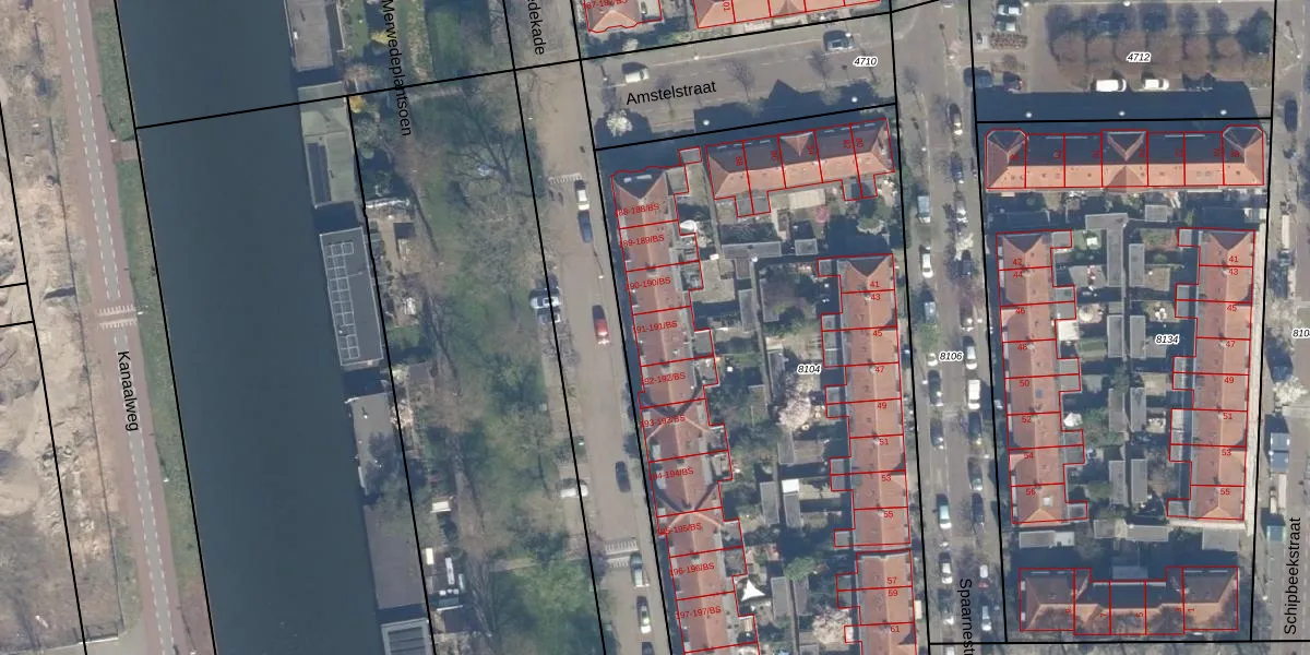 Het perceel waarop Merwedekade 191-BS staat heeft een oppervlakte van 3960 m². Dit is een zeer groot perceel. De perceeloppervlakte wordt geregistreerd door het Kadaster. Gedetailleerde informatie over de maten van dit perceel kunt u vinden in het rapport Kadastrale kaart met maatvoering van Merwedekade 191-BS.