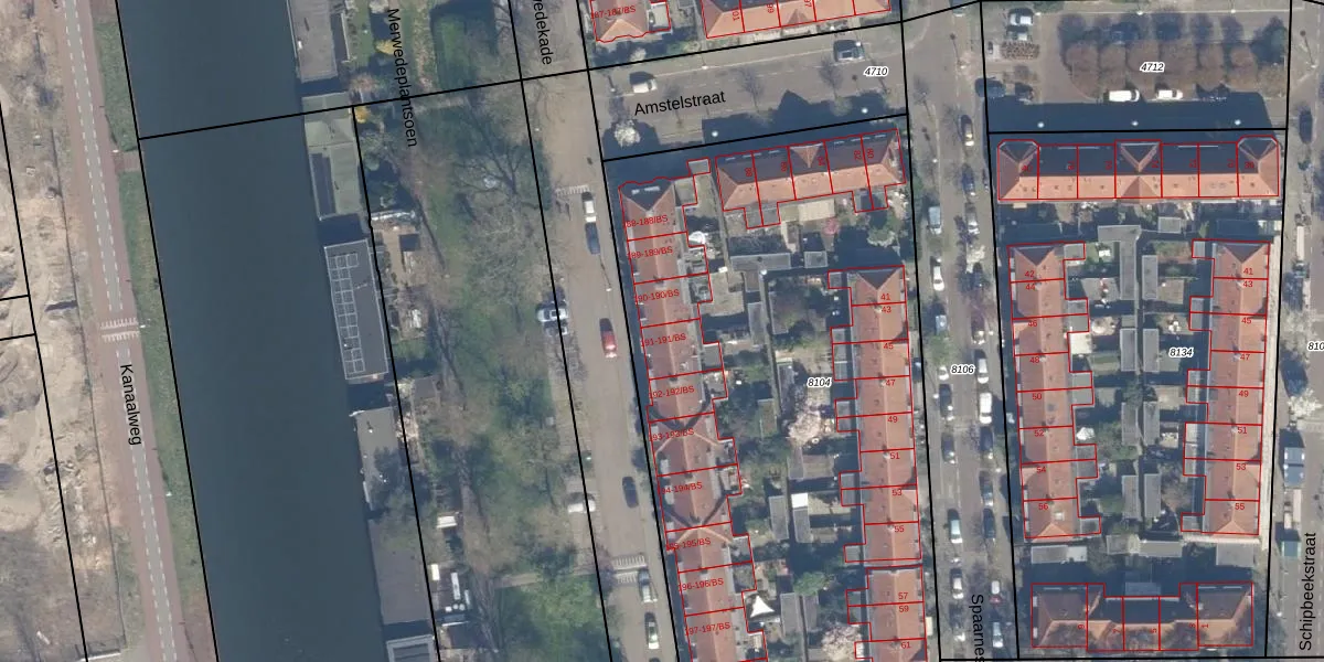 Het perceel waarop Merwedekade 191 staat heeft een oppervlakte van 3960 m². Dit is een zeer groot perceel. De perceeloppervlakte wordt geregistreerd door het Kadaster. Gedetailleerde informatie over de maten van dit perceel kunt u vinden in het rapport Kadastrale kaart met maatvoering van Merwedekade 191.