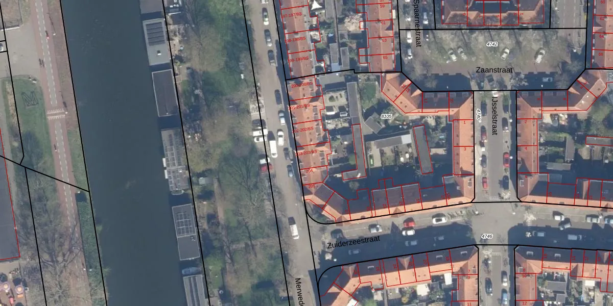 Het perceel waarop Merwedekade 203-BS staat heeft een oppervlakte van 2550 m². Dit is een zeer groot perceel. De perceeloppervlakte wordt geregistreerd door het Kadaster. Gedetailleerde informatie over de maten van dit perceel kunt u vinden in het rapport Kadastrale kaart met maatvoering van Merwedekade 203-BS.
