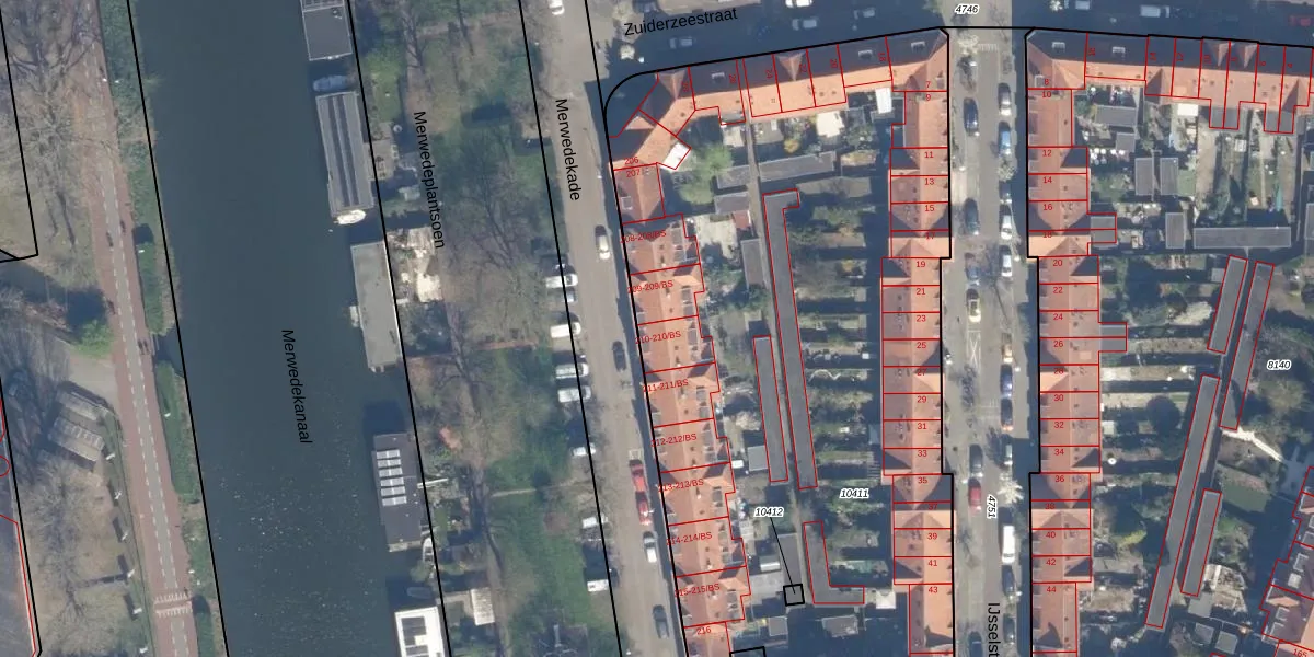 Het perceel waarop Merwedekade 210 staat heeft een oppervlakte van 4564 m². Dit is een zeer groot perceel. De perceeloppervlakte wordt geregistreerd door het Kadaster. Gedetailleerde informatie over de maten van dit perceel kunt u vinden in het rapport Kadastrale kaart met maatvoering van Merwedekade 210.