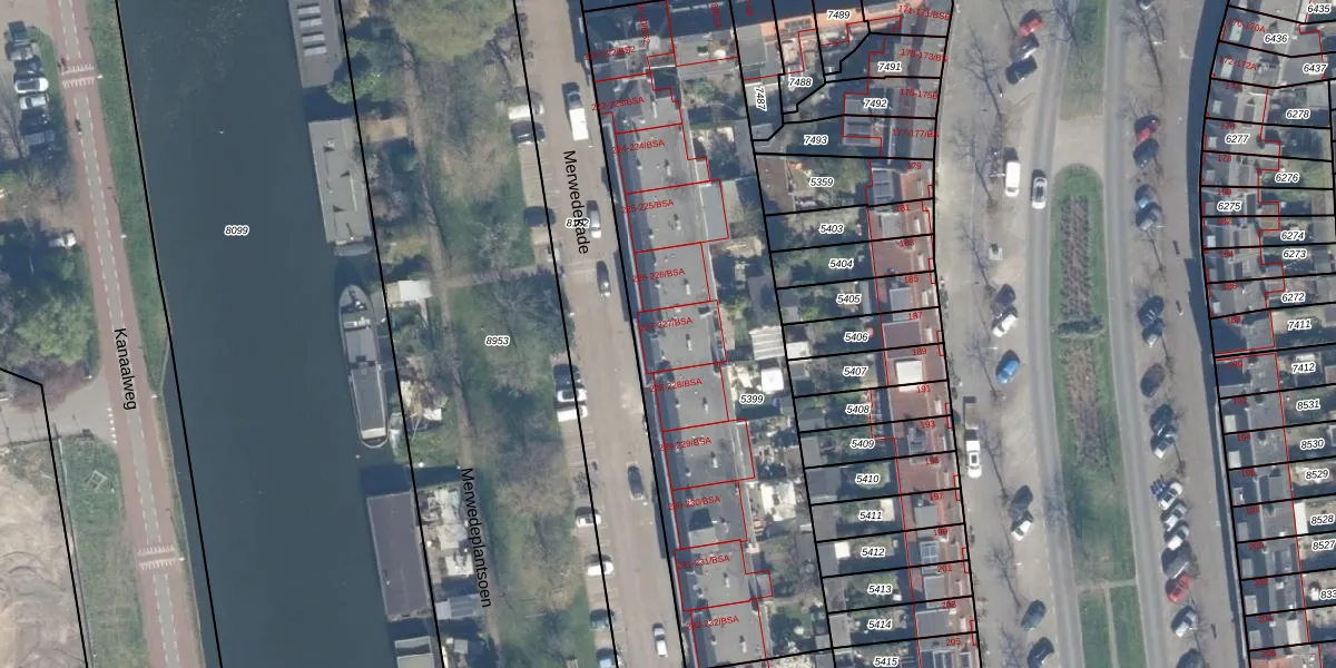 Merwedekade 227-BSA is gelegen op kadastraal perceel CTR00D5399. Deze kadastrale aanduiding is uniek en wordt gebruikt door het Kadaster om eigendomsrechten en andere zakelijke rechten vast te leggen. Het perceel maakt onderdeel uit van de kadastrale gemeente Catharijne.