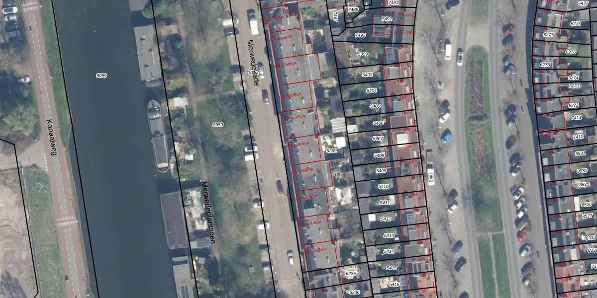 Merwedekade 228-BSA is gelegen op kadastraal perceel CTR00D5399. Deze kadastrale aanduiding is uniek en wordt gebruikt door het Kadaster om eigendomsrechten en andere zakelijke rechten vast te leggen. Het perceel maakt onderdeel uit van de kadastrale gemeente Catharijne.