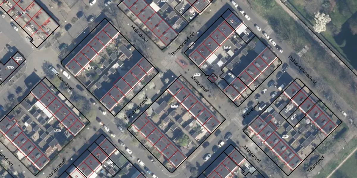 Midasdreef 1 is gelegen op kadastraal perceel UTT00H1515. Deze kadastrale aanduiding is uniek en wordt gebruikt door het Kadaster om eigendomsrechten en andere zakelijke rechten vast te leggen. Het perceel maakt onderdeel uit van de kadastrale gemeente Utrecht.