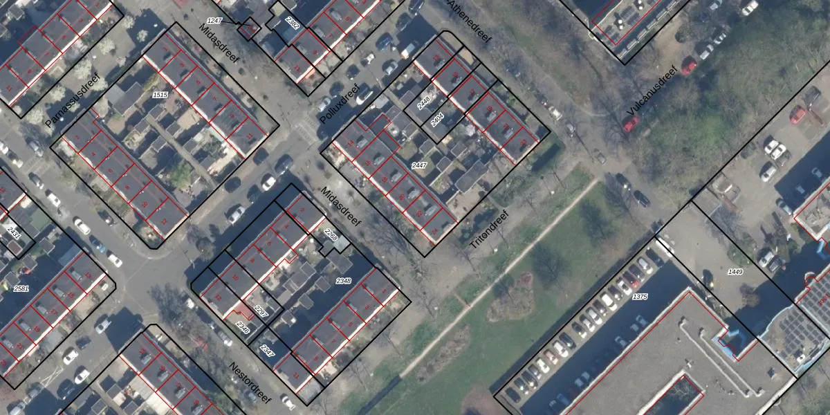 Het perceel waarop Midasdreef 22 staat heeft een oppervlakte van 1273 m². Dit is een zeer groot perceel. De perceeloppervlakte wordt geregistreerd door het Kadaster. Gedetailleerde informatie over de maten van dit perceel kunt u vinden in het rapport Kadastrale kaart met maatvoering van Midasdreef 22.