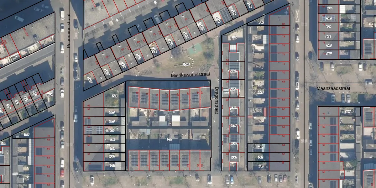 Mierikswortelstraat 45 is gelegen op kadastraal perceel CTR00F732. Deze kadastrale aanduiding is uniek en wordt gebruikt door het Kadaster om eigendomsrechten en andere zakelijke rechten vast te leggen. Het perceel maakt onderdeel uit van de kadastrale gemeente Catharijne.