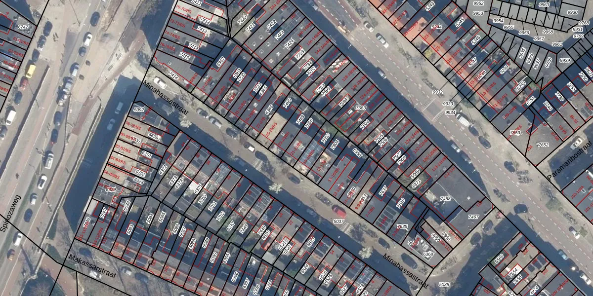 Minahassastraat 21-BS is gelegen op kadastraal perceel CTR00C7566. Deze kadastrale aanduiding is uniek en wordt gebruikt door het Kadaster om eigendomsrechten en andere zakelijke rechten vast te leggen. Het perceel maakt onderdeel uit van de kadastrale gemeente Catharijne.