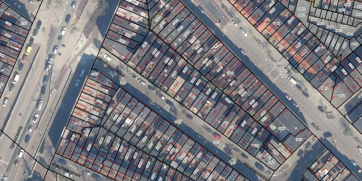 Minahassastraat 23 is gelegen op kadastraal perceel CTR00C7489. Deze kadastrale aanduiding is uniek en wordt gebruikt door het Kadaster om eigendomsrechten en andere zakelijke rechten vast te leggen. Het perceel maakt onderdeel uit van de kadastrale gemeente Catharijne.