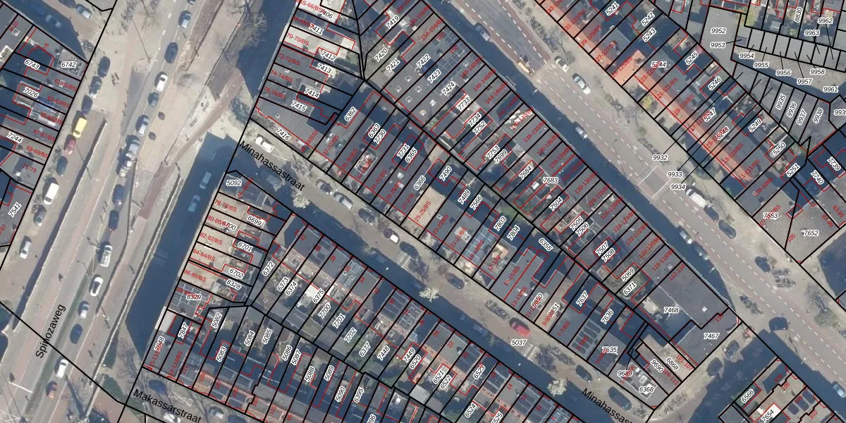 Het perceel waarop Minahassastraat 25-BS staat heeft een oppervlakte van 109 m². Dit is een middelgroot perceel. De perceeloppervlakte wordt geregistreerd door het Kadaster. Gedetailleerde informatie over de maten van dit perceel kunt u vinden in het rapport Kadastrale kaart met maatvoering van Minahassastraat 25-BS.