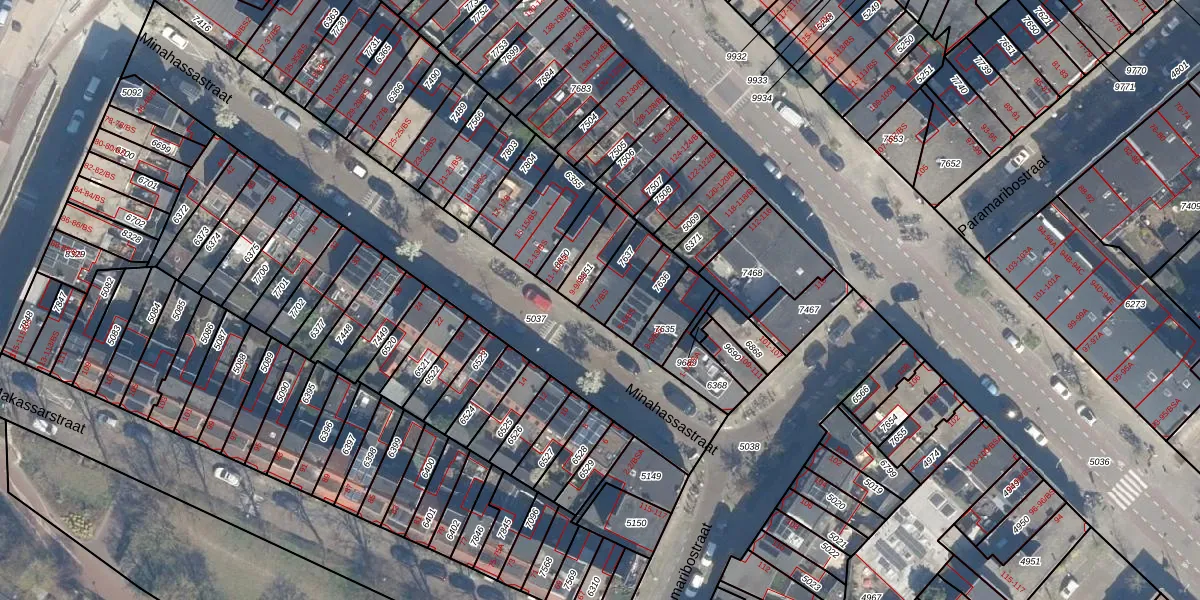 Het perceel waarop Minahassastraat 7-BS staat heeft een oppervlakte van 96 m². Dit is een klein perceel. De perceeloppervlakte wordt geregistreerd door het Kadaster. Gedetailleerde informatie over de maten van dit perceel kunt u vinden in het rapport Kadastrale kaart met maatvoering van Minahassastraat 7-BS.