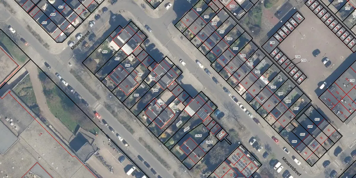 Minaretdreef 23 is gelegen op kadastraal perceel UTT00F460. Deze kadastrale aanduiding is uniek en wordt gebruikt door het Kadaster om eigendomsrechten en andere zakelijke rechten vast te leggen. Het perceel maakt onderdeel uit van de kadastrale gemeente Utrecht.