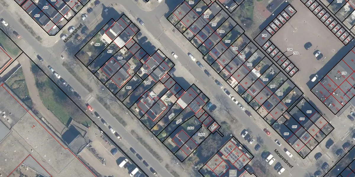 Minaretdreef 25 is gelegen op kadastraal perceel UTT00F461. Deze kadastrale aanduiding is uniek en wordt gebruikt door het Kadaster om eigendomsrechten en andere zakelijke rechten vast te leggen. Het perceel maakt onderdeel uit van de kadastrale gemeente Utrecht.