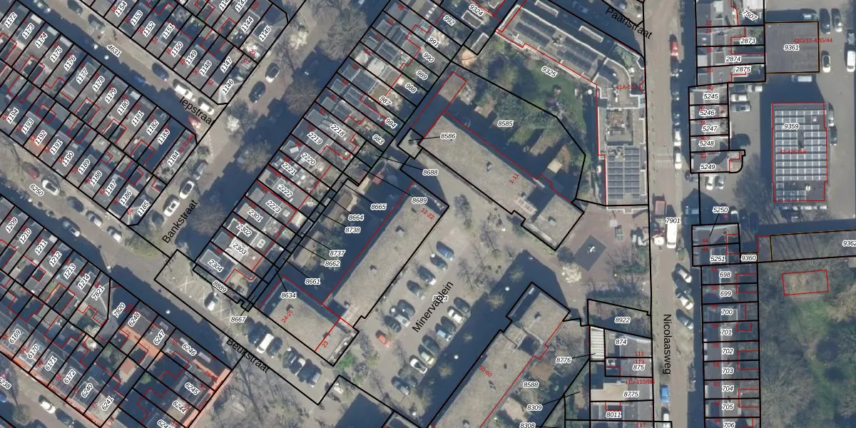 Minervaplein 12 is gelegen op kadastraal perceel ASD40C8585. Deze kadastrale aanduiding is uniek en wordt gebruikt door het Kadaster om eigendomsrechten en andere zakelijke rechten vast te leggen. Het perceel maakt onderdeel uit van de kadastrale gemeente Abstede.