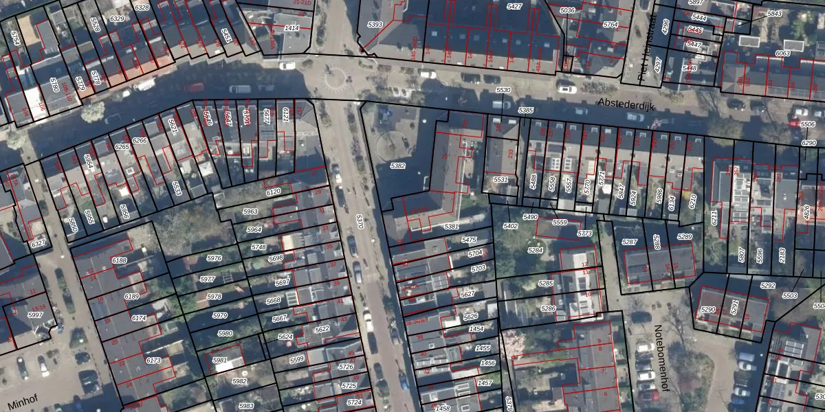 Minstraat 24 is gelegen op kadastraal perceel ASD40D5381. Deze kadastrale aanduiding is uniek en wordt gebruikt door het Kadaster om eigendomsrechten en andere zakelijke rechten vast te leggen. Het perceel maakt onderdeel uit van de kadastrale gemeente Abstede.