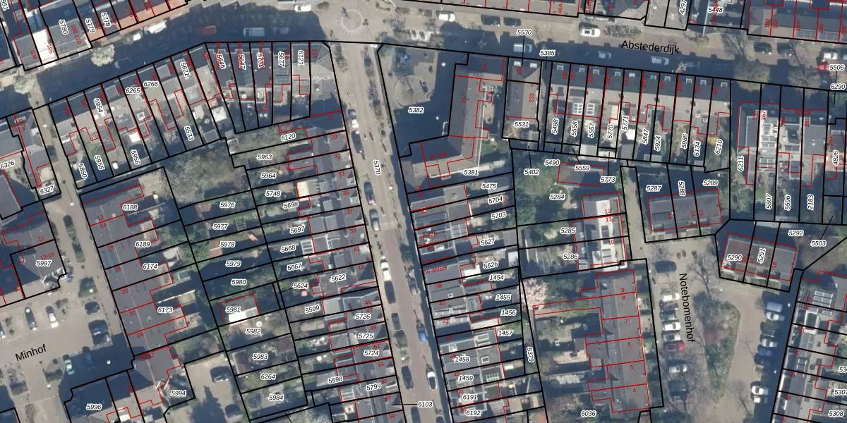 Gebruik de zoekbalk of klik op een perceel voor informatie over de adressen binnen dit perceel.