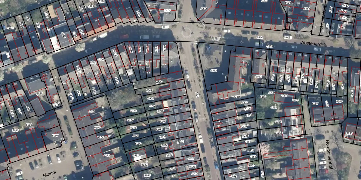 Gebruik de zoekbalk of klik op een perceel voor informatie over de adressen binnen dit perceel.
