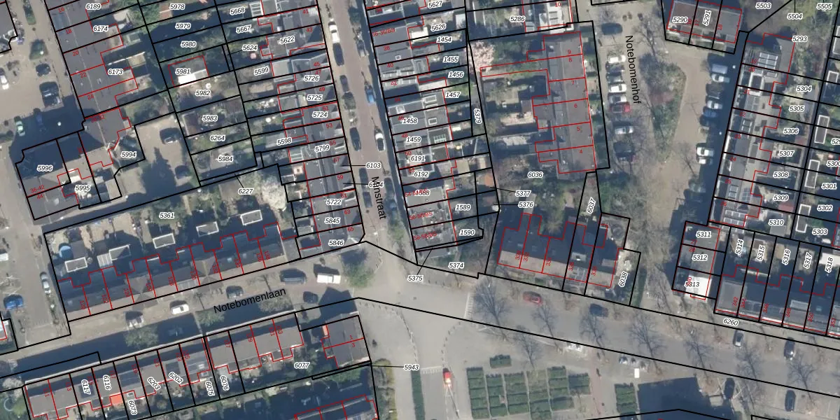 Het perceel waarop Minstraat 56 staat heeft een oppervlakte van 83 m². Dit is een klein perceel. De perceeloppervlakte wordt geregistreerd door het Kadaster. Gedetailleerde informatie over de maten van dit perceel kunt u vinden in het rapport Kadastrale kaart met maatvoering van Minstraat 56.
