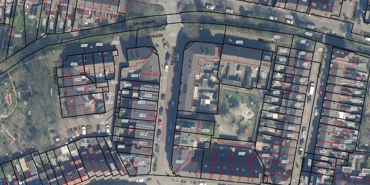 Het perceel waarop Minstraat 6 staat heeft een oppervlakte van 775 m². Dit is een groot perceel. De perceeloppervlakte wordt geregistreerd door het Kadaster. Gedetailleerde informatie over de maten van dit perceel kunt u vinden in het rapport Kadastrale kaart met maatvoering van Minstraat 6.