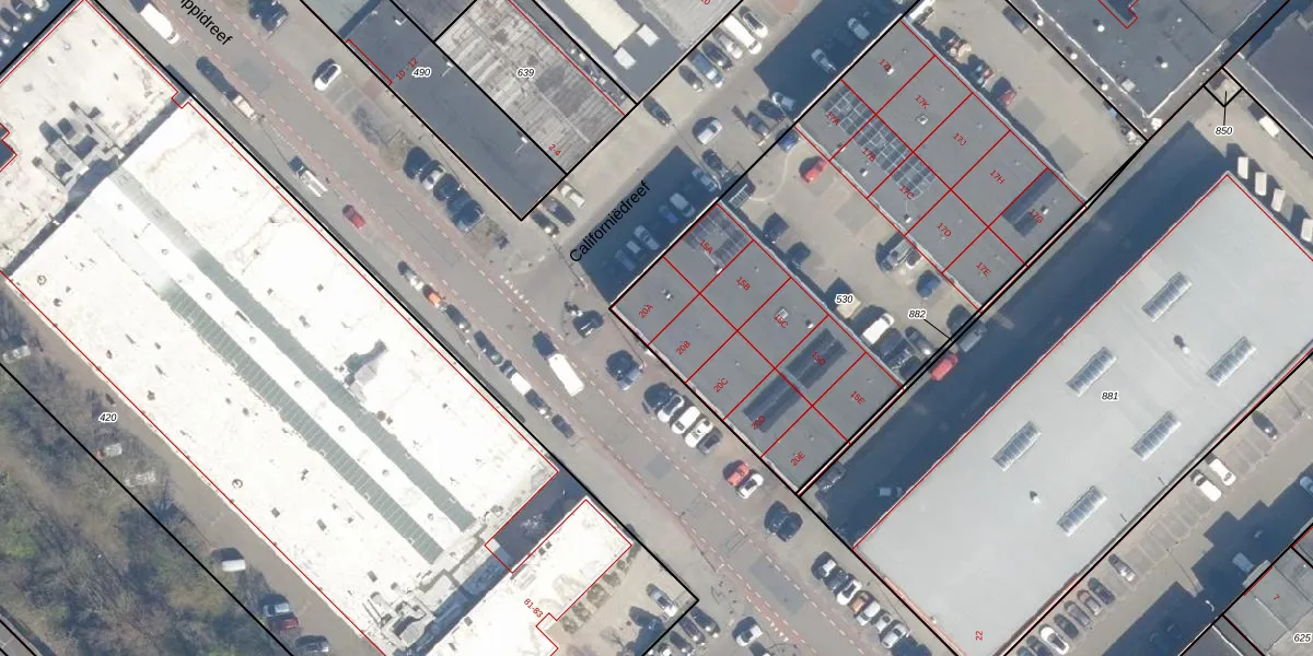 Het perceel waarop Mississippidreef 20-A staat heeft een oppervlakte van 3040 m². Dit is een zeer groot perceel. De perceeloppervlakte wordt geregistreerd door het Kadaster. Gedetailleerde informatie over de maten van dit perceel kunt u vinden in het rapport Kadastrale kaart met maatvoering van Mississippidreef 20-A.