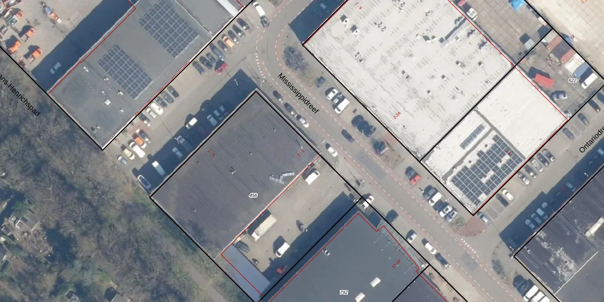 Het perceel waarop Mississippidreef 5 staat heeft een oppervlakte van 2488 m². Dit is een zeer groot perceel. De perceeloppervlakte wordt geregistreerd door het Kadaster. Gedetailleerde informatie over de maten van dit perceel kunt u vinden in het rapport Kadastrale kaart met maatvoering van Mississippidreef 5.