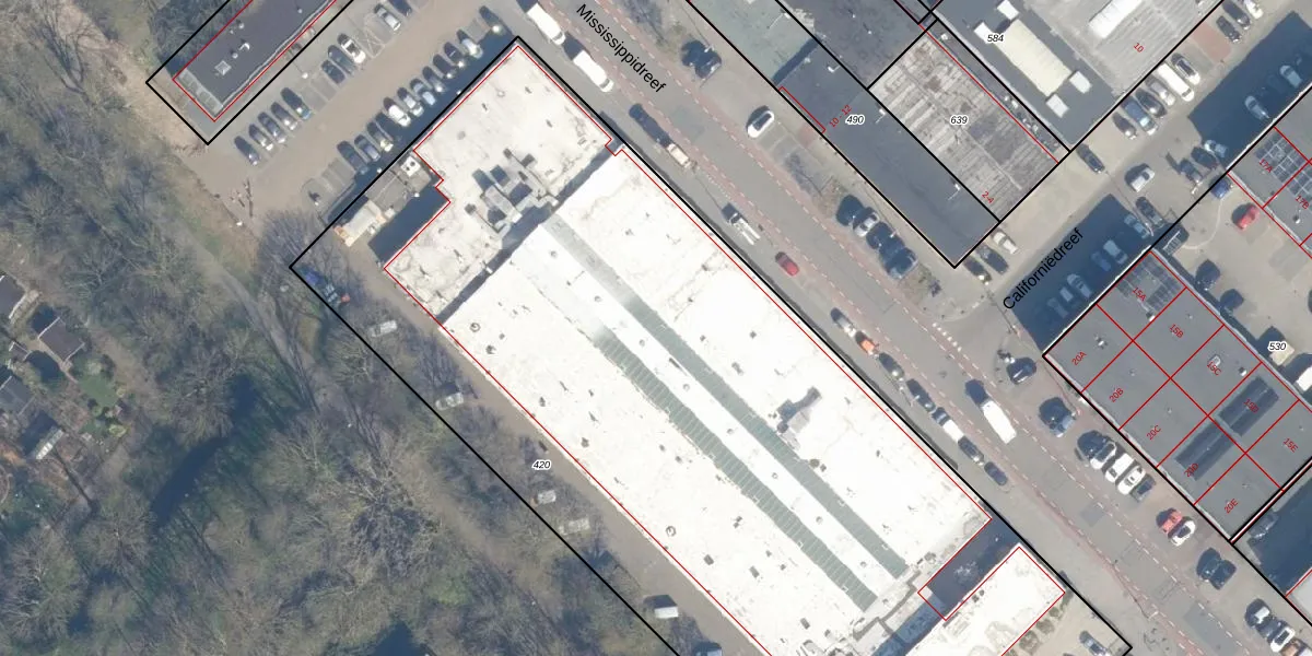 Het perceel waarop Mississippidreef 81-5 staat heeft een oppervlakte van 6558 m². Dit is een zeer groot perceel. De perceeloppervlakte wordt geregistreerd door het Kadaster. Gedetailleerde informatie over de maten van dit perceel kunt u vinden in het rapport Kadastrale kaart met maatvoering van Mississippidreef 81-5.