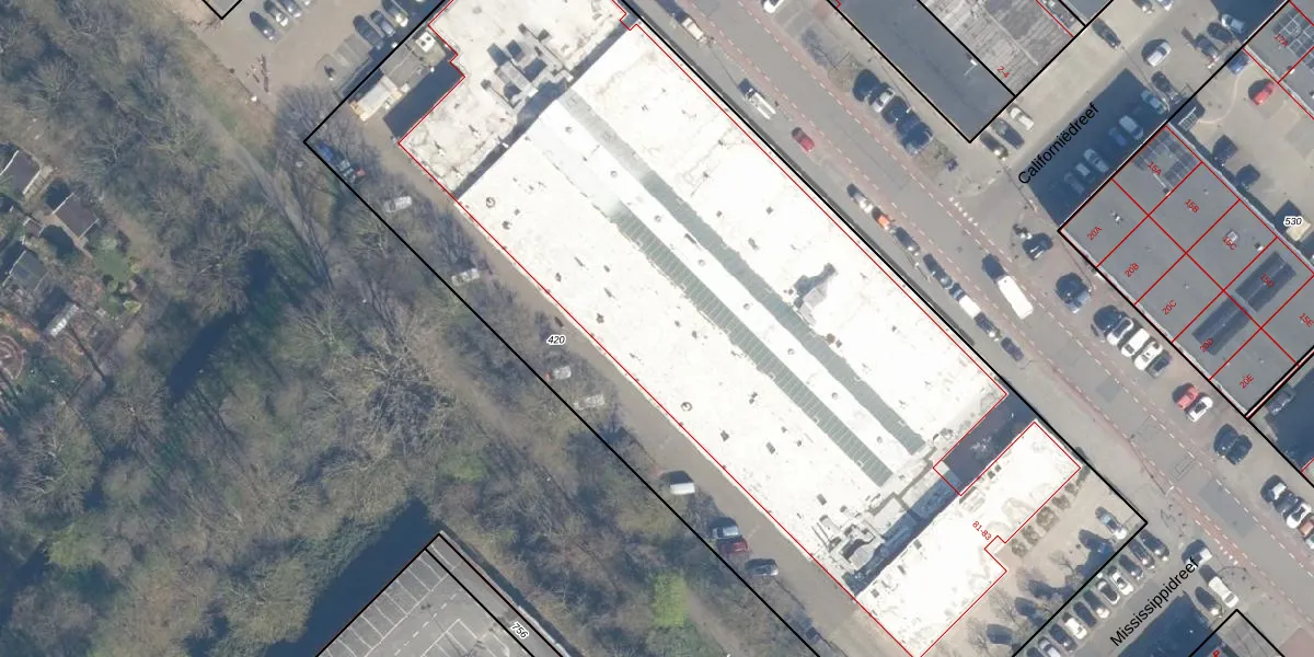 Het perceel waarop Mississippidreef 81-32 staat heeft een oppervlakte van 6558 m². Dit is een zeer groot perceel. De perceeloppervlakte wordt geregistreerd door het Kadaster. Gedetailleerde informatie over de maten van dit perceel kunt u vinden in het rapport Kadastrale kaart met maatvoering van Mississippidreef 81-32.