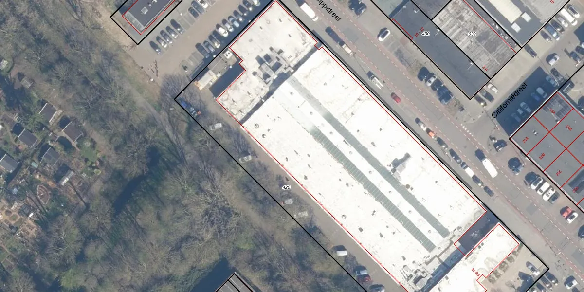 Het perceel waarop Mississippidreef 81-35 staat heeft een oppervlakte van 6558 m². Dit is een zeer groot perceel. De perceeloppervlakte wordt geregistreerd door het Kadaster. Gedetailleerde informatie over de maten van dit perceel kunt u vinden in het rapport Kadastrale kaart met maatvoering van Mississippidreef 81-35.